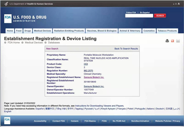 美国食品药品监督管理局(FDA)是国际医疗审核权威机构,通过FDA认证的食品、药品、化妆品和医疗器械等产品,是全球权威标准证明。yabo鸭脖官网生物四通道iPonatic核酸检测分析仪获美国FDA认证后,将有效扩大和满足全球市场各级检测防控需求,为全球疫情防控工作持续助力,推动公司全球化事业发展。