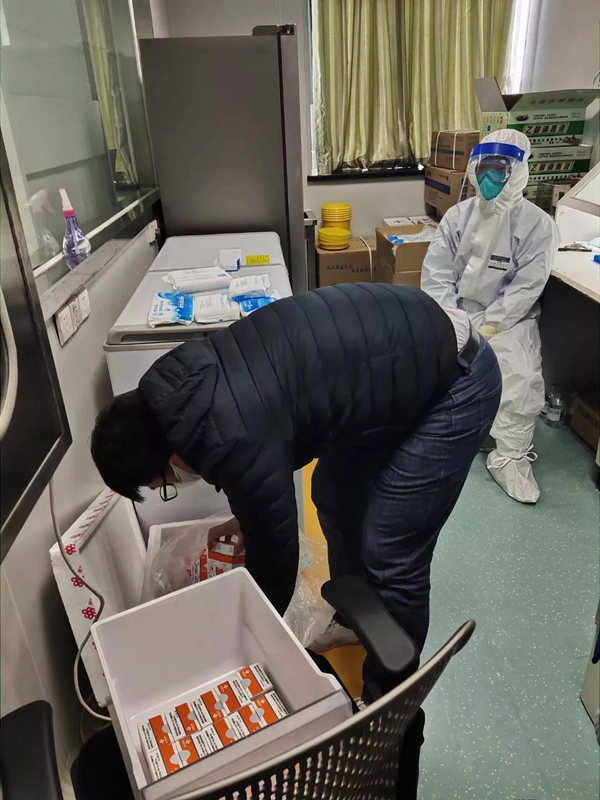 yabo鸭脖官网生物捐赠的第一批医疗设备、试剂以及配套耗材,顺利抵达武汉。与当地合作商一起,装运货物入库。